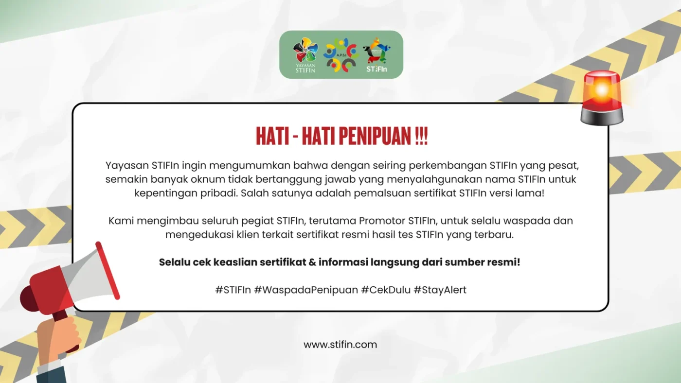 Lindungi diri Anda dari penipuan dan pastikan hanya mendapatkan hasil analisis STIFIn yang valid dan terpercaya.